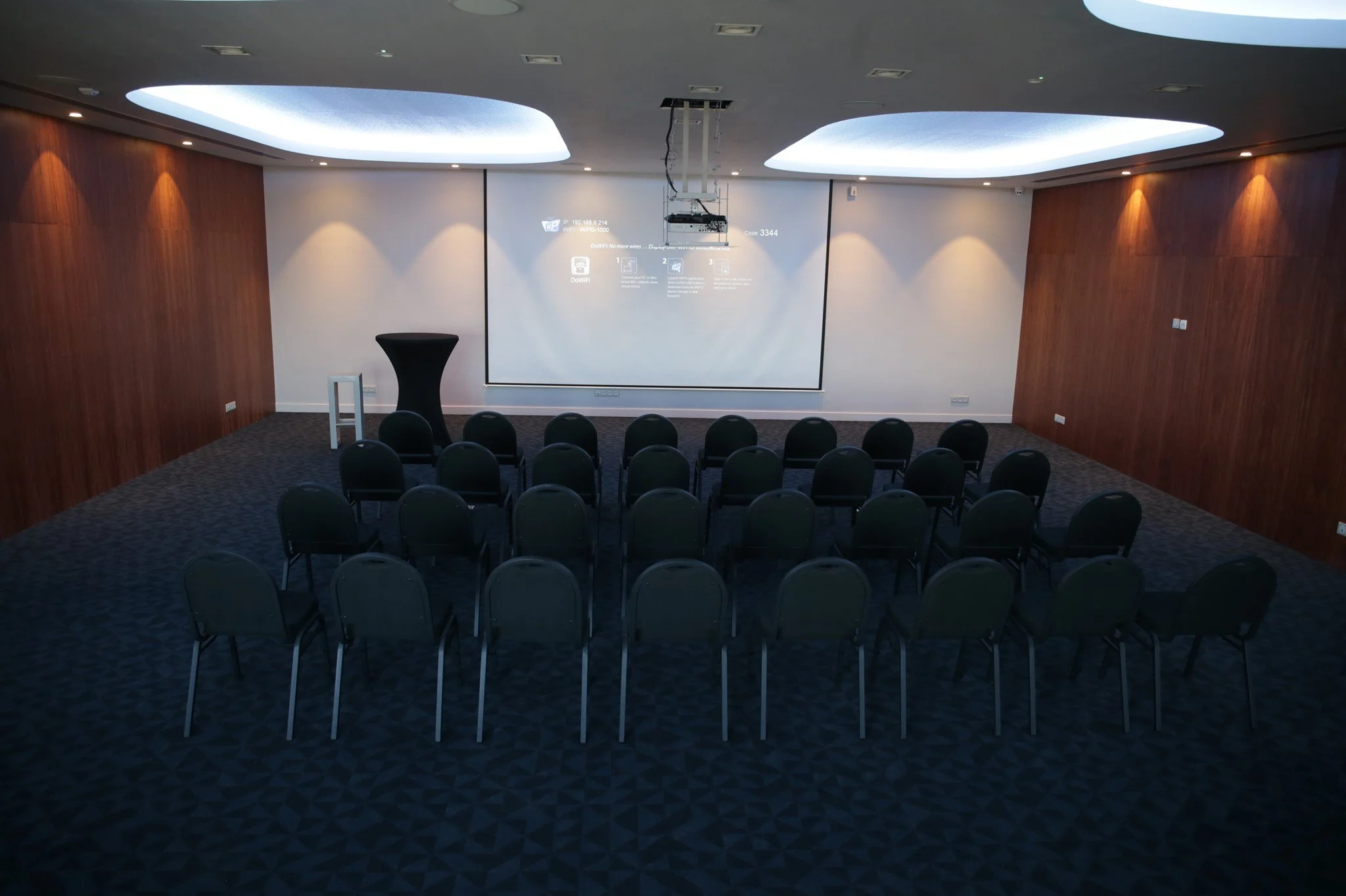 La salle Alif (7ᵉ étage, terrasse couverte) accueille jusqu’à 120 personnes. Écrans 4K, sonorisation pro, Wi-Fi dédié et formules traiteur sur-mesure.